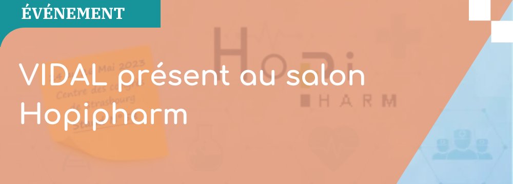VIDAL est heureux de vous annoncer sa participation à HOPIPHARM 2024, le congrès francophone de pharmacie hospitalière, qui se déroulera du 24 au 26 mai à Strasbourg. Cet événement majeur pour les professionnels de santé permettra d'explorer les dernières innovations en pharmacie hospitalière. Retrouvez-nous sur notre stand n°58, où nous aurons le plaisir de vous présenter nos solutions dédiées à l'amélioration de la qualité des soins.
